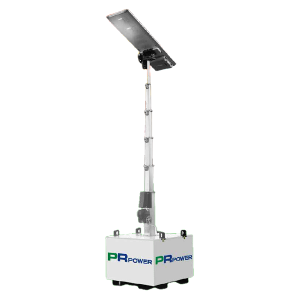 The PR Eco Street Light is an environmentally friendly lighting solution featuring an auto dim sensor that activates with movement to conserve battery life. With a compact stow size of 1.5m L x 0.6m W x 2.36m H and a max mast height of 8.5m, it provides versatile and efficient illumination. Boasting zero CO2 emissions and silent operation, it is ideal for residential night works. Equipped with a high-efficiency solar panel, this street light is both sustainable and reliable.